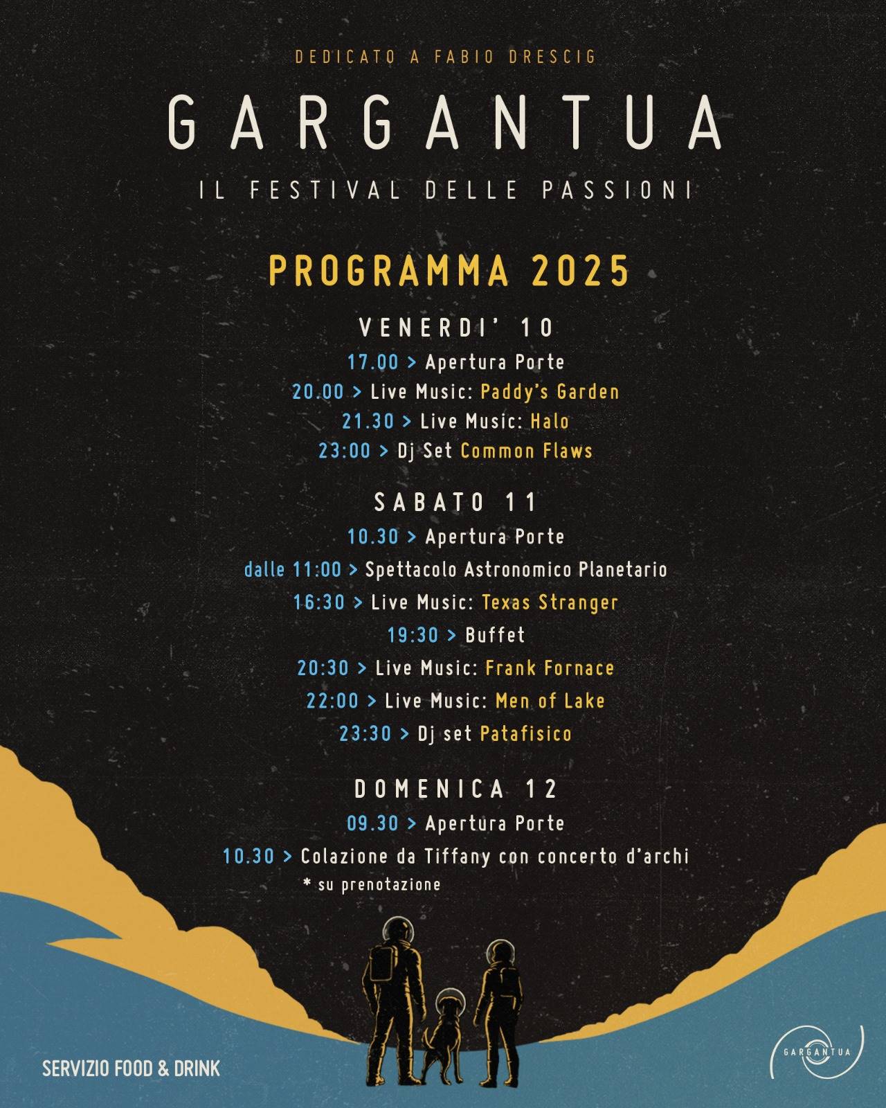 Torna, alla spiaggia degli Olivi di Riva del Garda, questo festival dedicato alla passioni. Terzo anno consecutivo tra arte di ogni tipo, musica e... Stelle con gli astrofili. ✨ 𝗚𝗮𝗿𝗴𝗮𝗻𝘁𝘂𝗮 – 𝗙𝗲𝘀𝘁𝗶𝘃𝗮𝗹 𝗱𝗲𝗹𝗹𝗲 𝗣𝗮𝘀𝘀𝗶𝗼𝗻𝗶 ✨ 📍 Spiaggia degli Olivi - Riva del Garda 🗓️ 10 • 11 • 12 ottobre 2025 Ci sono nomi che non sono semplici etichette. Ci sono nomi che portano con sé storie, visioni, mondi interi. “𝗚𝗮𝗿𝗴𝗮𝗻𝘁𝘂𝗮” è uno di questi. 📖 Dal genio di François Rabelais, 𝗚𝗮𝗿𝗴𝗮𝗻𝘁𝘂𝗮 è il gigante colossale, curioso e insaziabile, capace di divorare il sapere con lo stesso appetito con cui divora la vita. È simbolo di energia vitale, di fame di esperienze, di ricerca senza fine. 🌌 Secoli dopo, la scienza e l’immaginazione hanno prestato lo stesso nome a un’altra forma di immensità: il buco nero 𝗚𝗮𝗿𝗴𝗮𝗻𝘁𝘂𝗮 raccontato in 𝐼𝑛𝑡𝑒𝑟𝑠𝑡𝑒𝑙𝑙𝑎𝑟. Un abisso cosmico che piega spazio e tempo, un luogo misterioso dove la passione umana per la conoscenza si spinge fino ai suoi limiti più estremi. È qui che nasce la nostra visione: 🌀 𝗚𝗮𝗿𝗴𝗮𝗻𝘁𝘂𝗮 – 𝗙𝗲𝘀𝘁𝗶𝘃𝗮𝗹 𝗱𝗲𝗹𝗹𝗲 𝗣𝗮𝘀𝘀𝗶𝗼𝗻𝗶 a Riva del Garda è l’incontro tra la forza vitale del gigante letterario e il fascino vertiginoso dell’universo. Un luogo dove le passioni diventano motore, dove le arti, la musica, le parole e le visioni si fondono in un vortice che inghiotte e restituisce emozioni. ⛰️ 🌊 Ai piedi delle montagne, tra le acque del lago e il respiro del vento, vivremo tre giorni di incontri, spettacoli e suggestioni capaci di farci sentire piccoli davanti alla grandezza delle nostre stesse passioni… e, allo stesso tempo, giganti. Perché 𝗚𝗮𝗿𝗴𝗮𝗻𝘁𝘂𝗮 non è solo un nome: è un invito a nutrirsi di vita, a lasciarsi trasportare dalla vertigine del desiderio, ad abbracciare l’infinito. 💫 Entra nel vortice delle tue passioni. Benvenuto a 𝗚𝗮𝗿𝗴𝗮𝗻𝘁𝘂𝗮. Save the Date and Stay Tuned 🔊 🗓️ 10-11-12 ottobre 2025 📍 Spiaggia degli Olivi - Riva del Garda #IoSonoGargantua